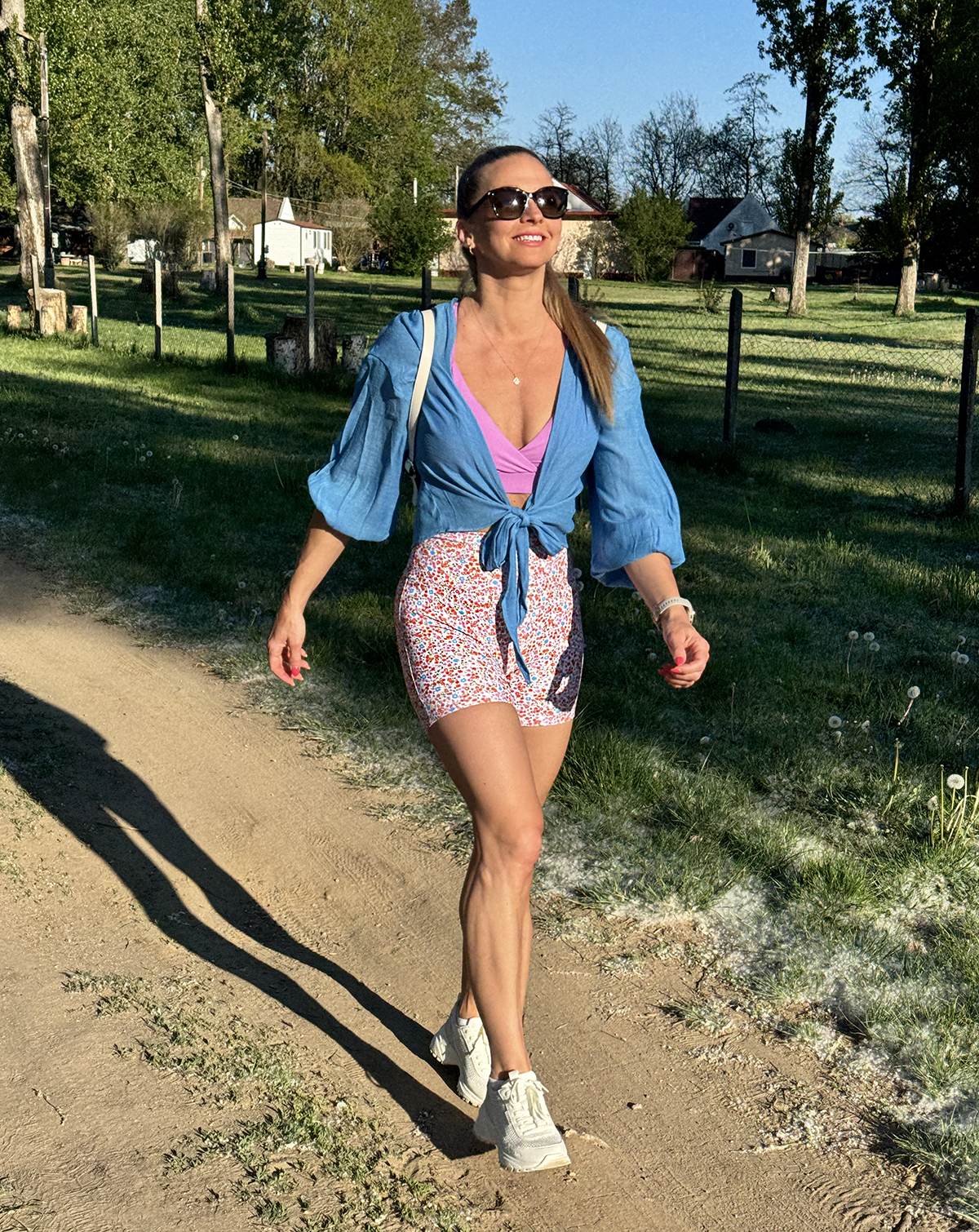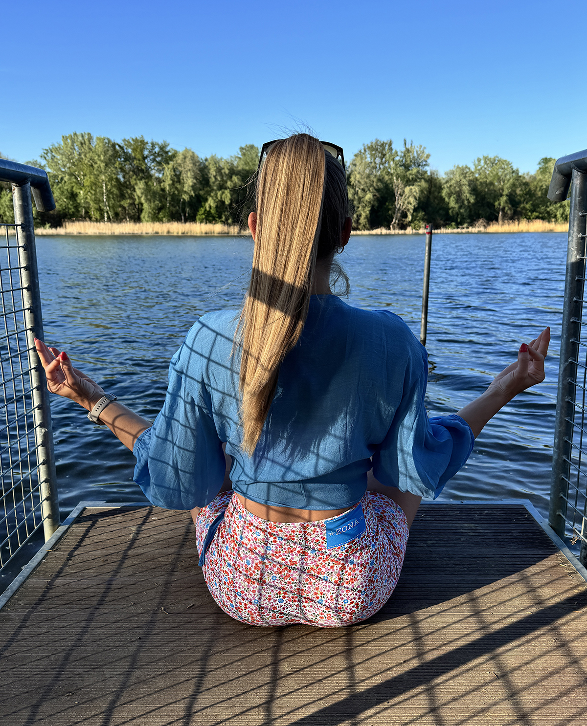 Virágmintás, magas derekú rövidnadrág, puha fitnesz anyagból.
